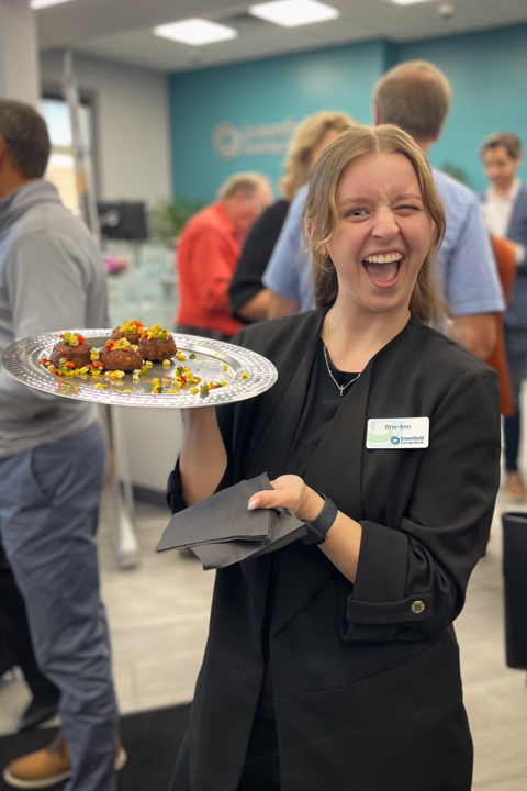 We don’t just balance books. We balance trays too!! Brie-Ann, a Northampton teller, offered crab cakes to our guests.