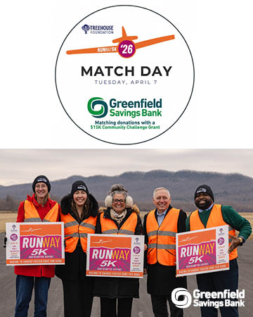 Greenfield Savings Bank’s will be providing a $15,000 match to all donations to the Treehouse Foundation on Tuesday, April 7th starting at 6:00am.
